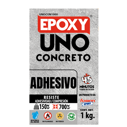 Fusion Epoxy – Epoxy UNO Adhesivo Epóxico Industrial Construcción 1 kg UNOCON1000 Fusion Epoxy Epoxy UNO UNOCON1000 es un adhesivo epóxico bicompon...